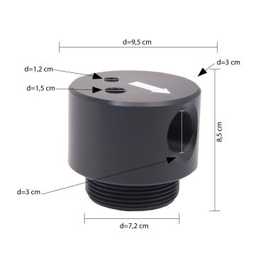 • Aeration In-Out head with tank connection: 2 ½“ complete with o-ring