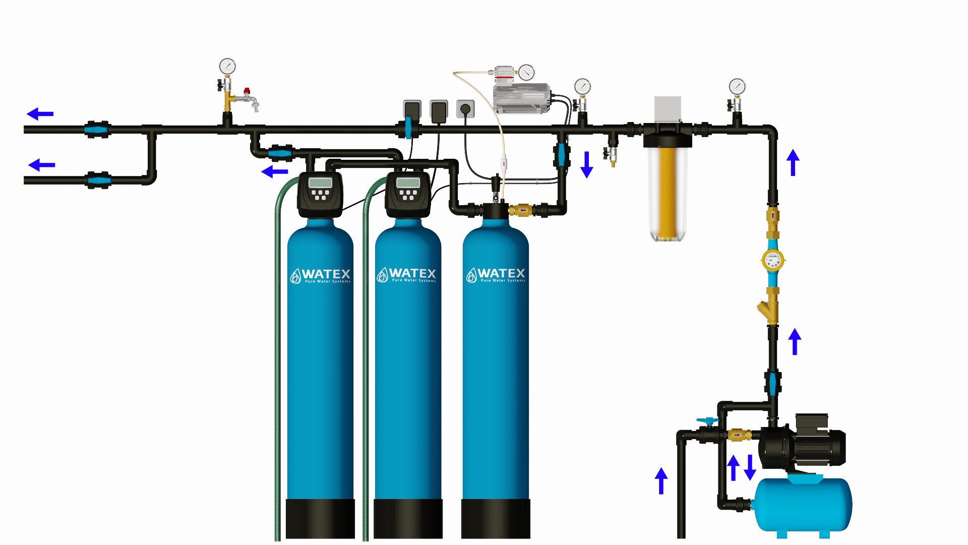 The filter is equipped with an automatic Clack control valve which performs filtering and rinsing sequences automatically. Usually rinsing is performed at 2:00 at night.