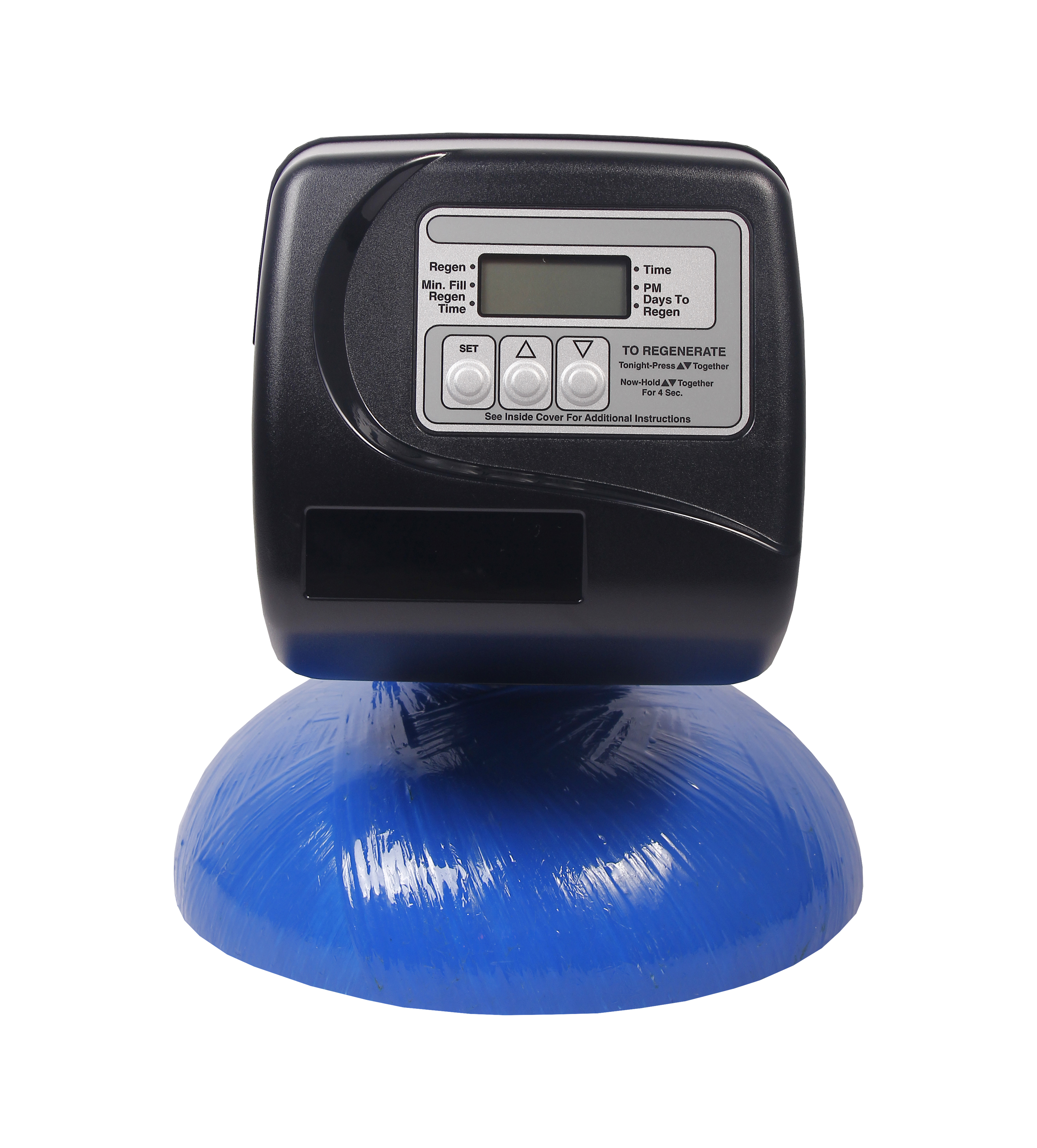Priekinis ekranas su paros laiku ir dienomis iki regeneracijos |
