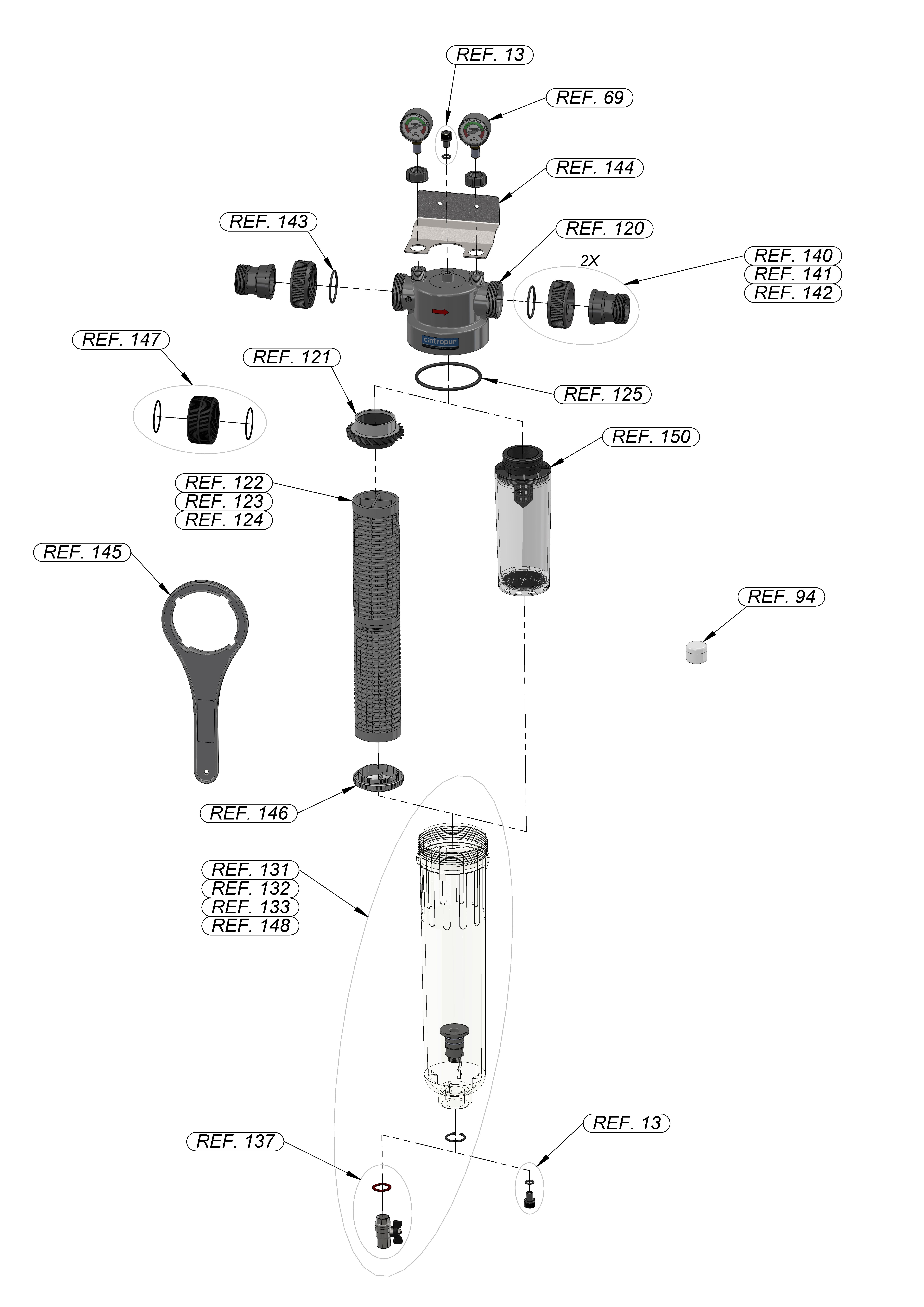 CINTROPUR NW650 vandens filtras pagamintas iš aukščiausios kokybės sintetinės medžiagos. Cintropur NW650 mentelė keičia skysčio srautą naudodama išcentrinį judesį, priversdama didesnes daleles į keptuvės dugną, jas sumažindama, priklausomai nuo pasirinkto filtro elemento mikronų dydžio.