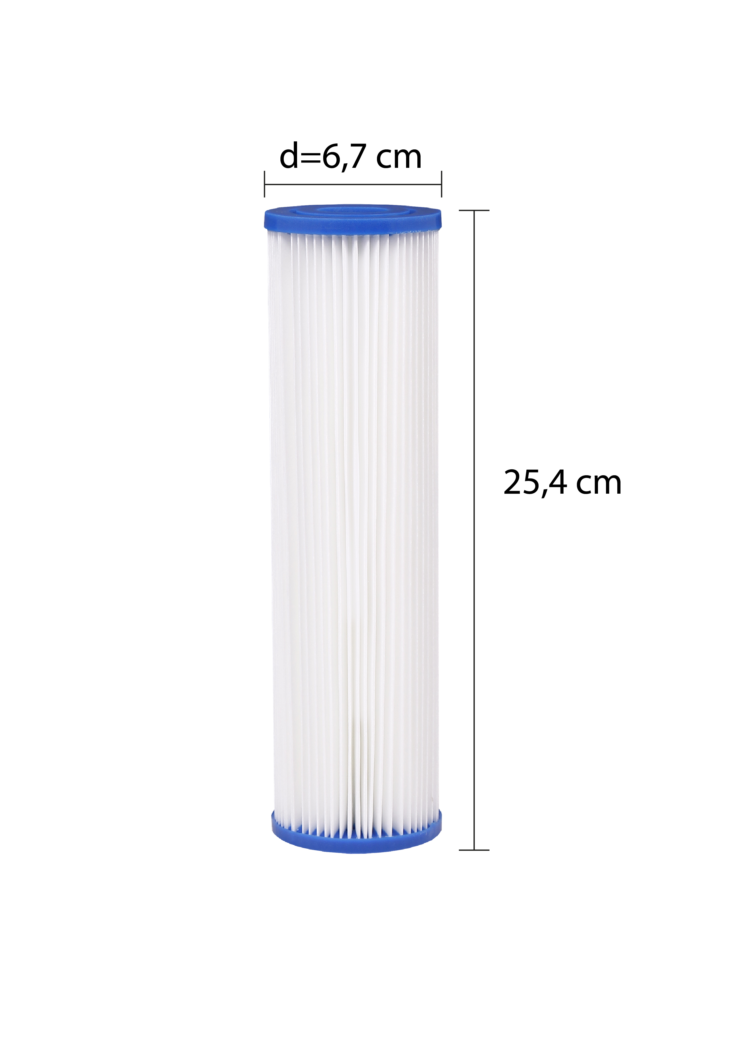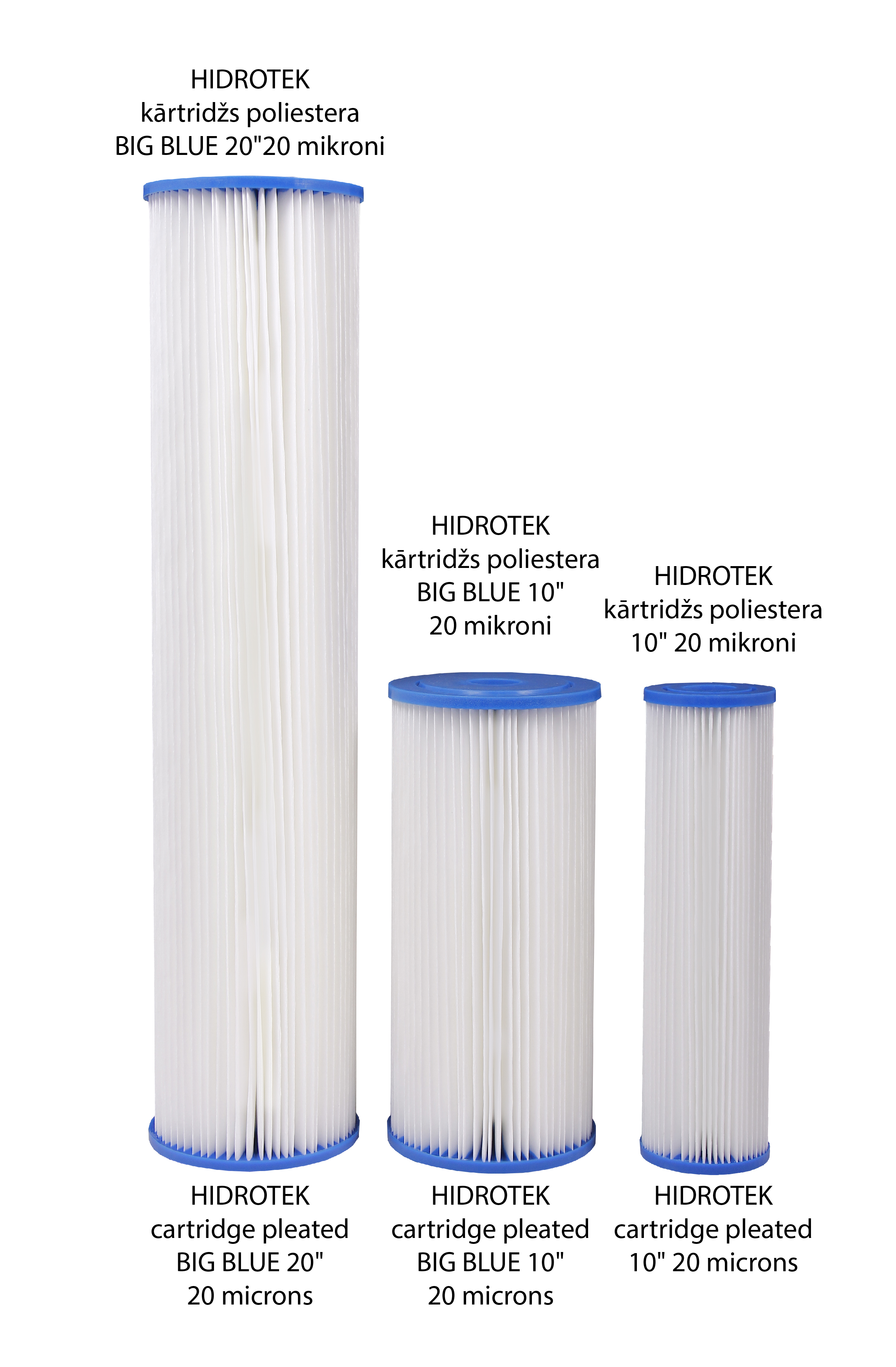 Keičiamasis filtro elementas – kasetė su padidintu filtravimo paviršiumi (pleated). Tinka mechaninių priemaišų mažinimui šaltame vandenyje.