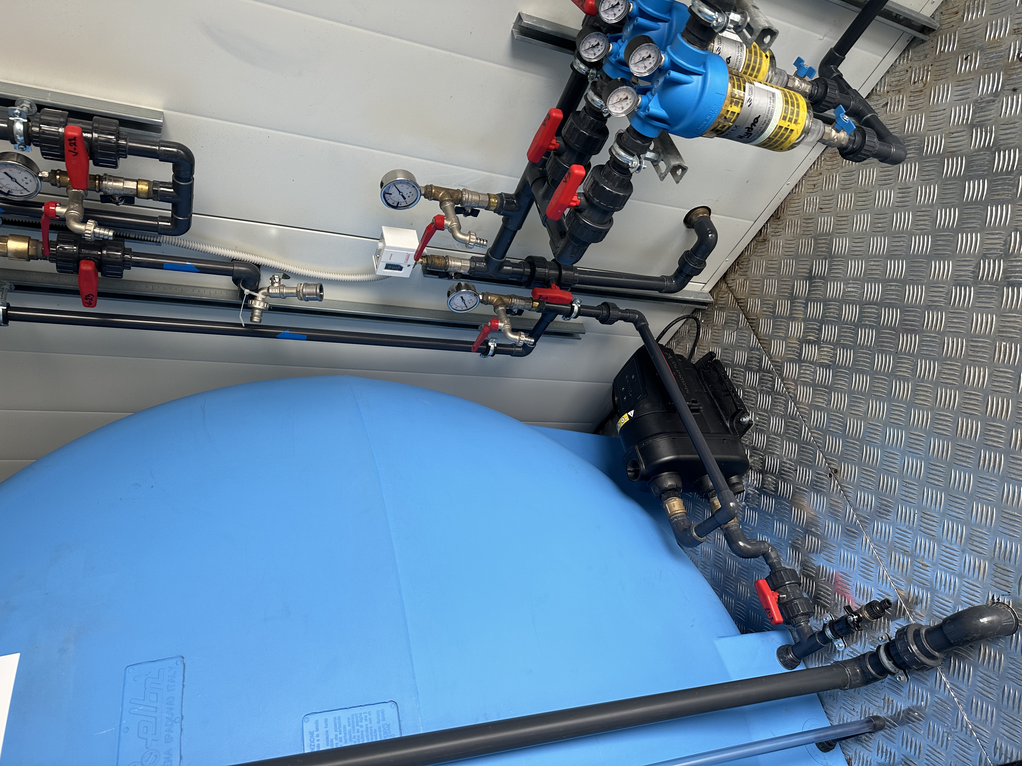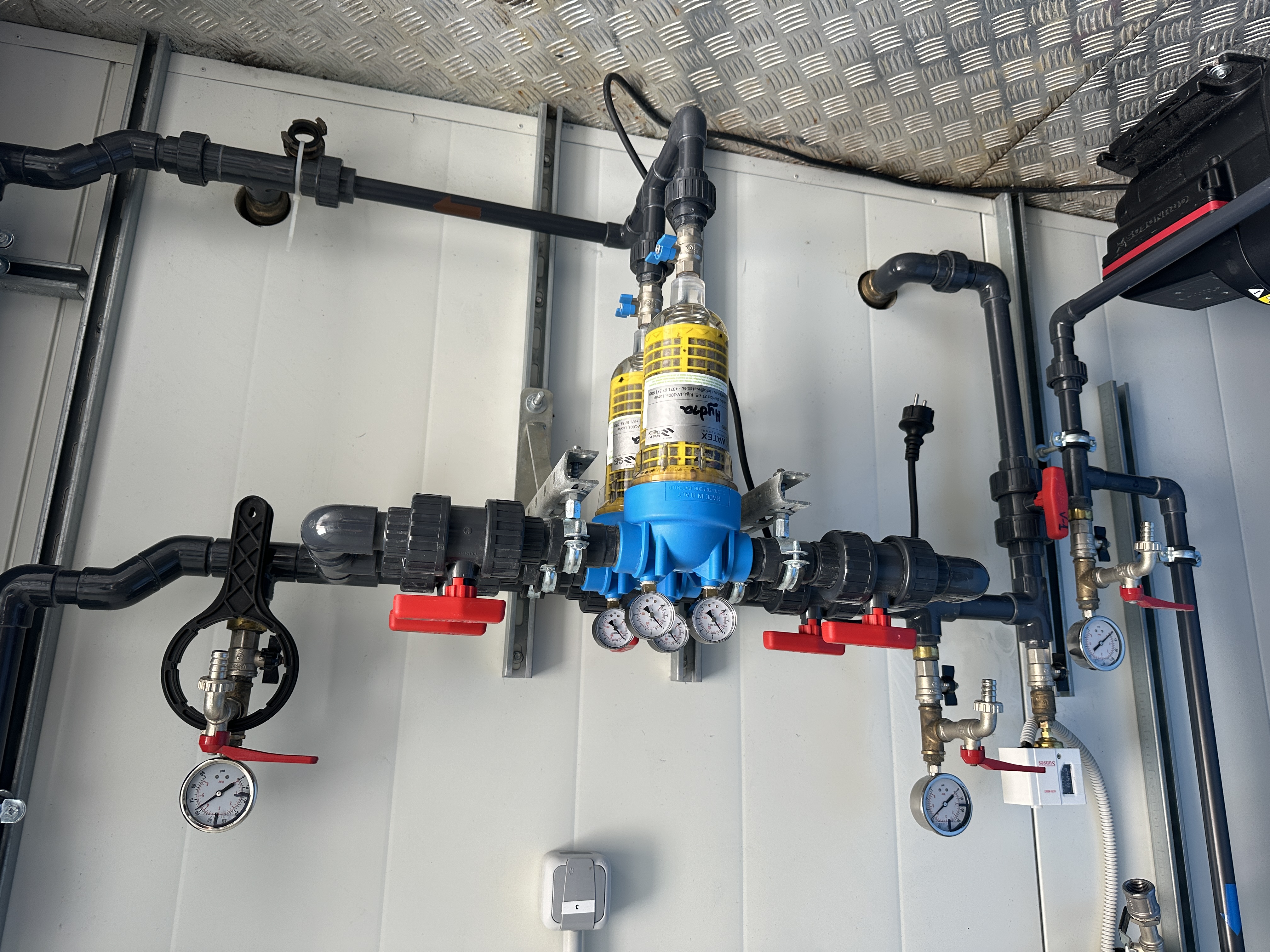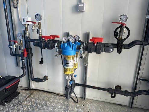 PE arba PVC vamzdynas su srauto matuokliais, mėginių ėmimo taškais ir valdymo vožtuvais