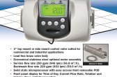 • Priekšējā paneļa displejs rāda: diennakts laiku, aktuālo plūsmas ātrumu, totalizatoru un tilpumu/dienas līdz reģenerācijai