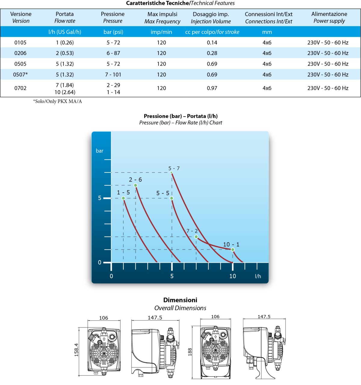 Dozēšanas sūknis PKX atšķiras no konkurentu eksemplāriem tirgū ar savu vienkāršotu lietošanu, augstu uzticamību, kvalitāti un tās vispārējiem kompaktajiem izmēriem. PKX dozēšanas sūknis, pateicoties savām īpašībām un daudzpusībai, ir ideāls sūknis ķīmisko produktu dozēšanai daudzās pielietojuma jomās, piemēram: baseiniem, auto mazgāšanai, ūdens attīrīšanai u.c. Komplektācijā ietilpst dozēšanas sūknis - komplektā piegādātiem (sūknī iestrādātiem) vienkāršiem lodveida tipa pretvārstiem – sūkņa ieplūdē un izplūdē, ieskaitot dozēšanas ligzdu, sūcvadu dozēšanas tvertnē un reaģentu tvertnē.