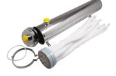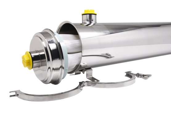 Sistēma izgatavota no nerūsējošā tērauda AISI-304 ar augstas veiktspējas PVDF ultrafiltrācijas membrānām (0,01 mikrona). Iebūvētie manometri un krāni ļauj kontrolēt spiedienu un veikt manuālu membrānu skalošanu.